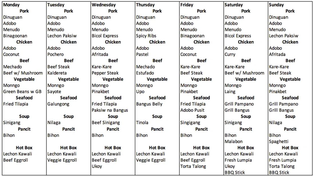 MENU SUBJECT TO CHANGE WITHOUT NOTICE, DUE TO LOW SUPPLY OF PRODUCTS